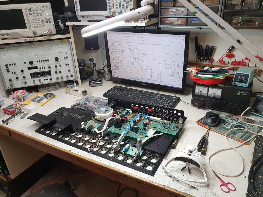 Heute ist ein Aura VA-50 Amp an der Reihe. Endstufen-Transistoren Wechsel und Elko-Frischzellenkur ist angesagt.