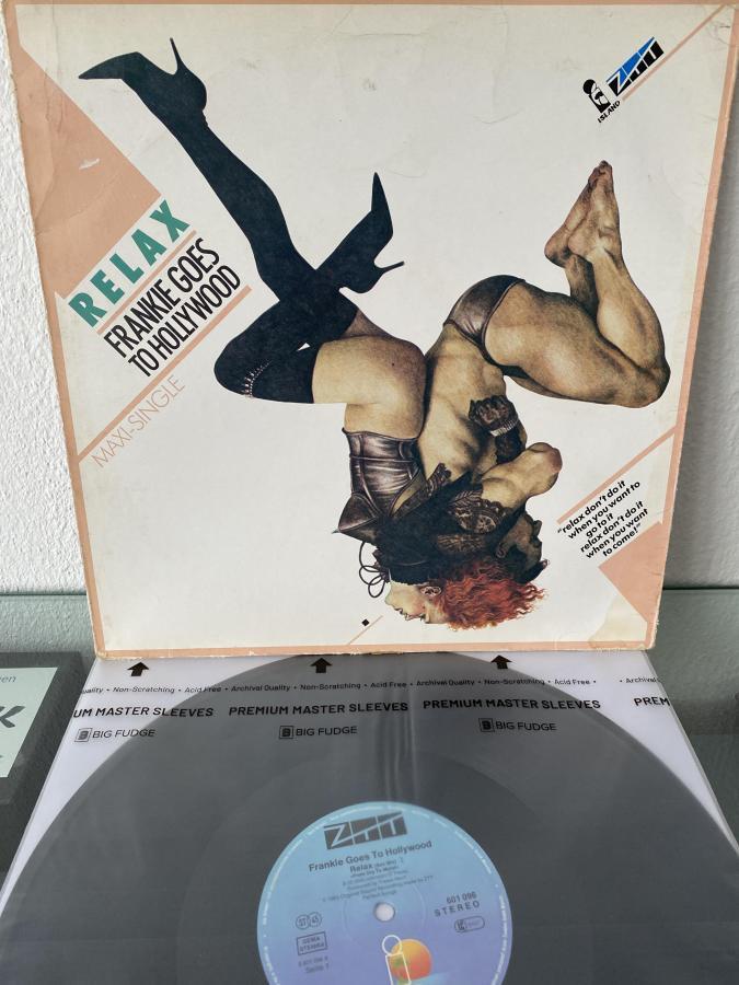 Also habe ich mich frisch ans Werk gemacht. Exemplarisch sei mal die "Relax" von Frankie Goes To Hollywood genannt/gezeigt. Die beigefügten Fotos vor der Reinigung und danach zeigen es. Das Cover ist im Vergleich zur durchaus gut erhaltenen Scheibe selbst doch arg in Mitleidenschaft gezogen gewesen. Der alte Preissticker war da noch die einfachste Sache. Aber ansonsten war das Cover ziemlich verschlissen und hat wohl auch mal Kontakt mit einer Flüssigkeit gehabt.... War also doch recht viel zu tun. Vorsicht war geboten wegen des dünnen Kartons. "Rubbeln" immer nur ganz vorsichtig. Allein die Coverreinigung hat so gut eine 3/4 Stunde gedauert, da man immer wieder kurze "Einweich- und Trocknungsphasen" beachten mußte. Das abschließende Ergebnis ist aber doch besser als "befürchtet"