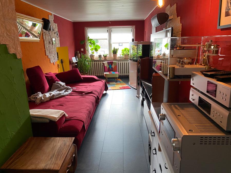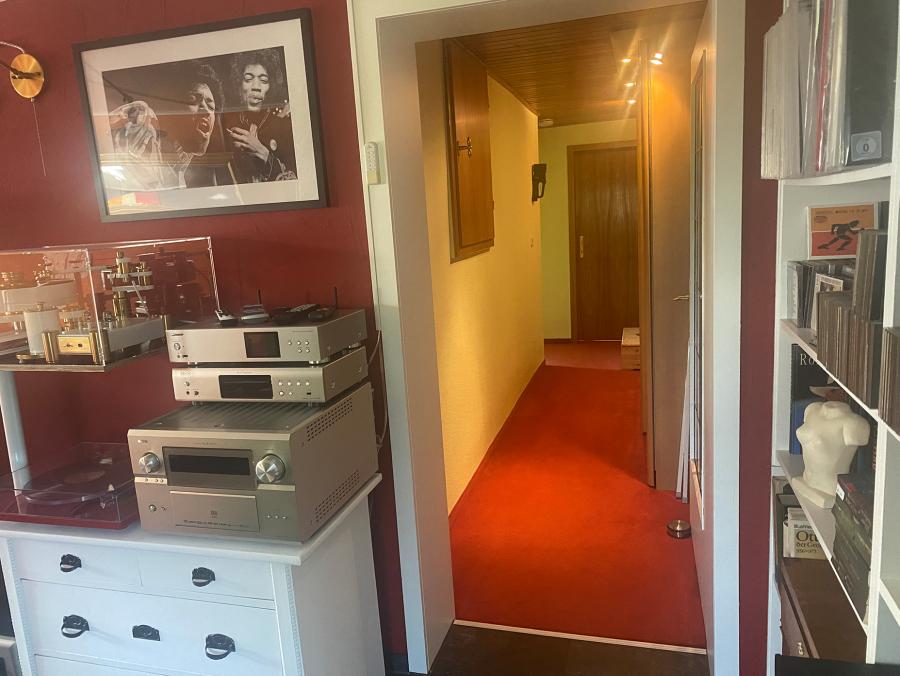 Hier ist Mal eine Vorstellung von unserem jetzigen Wohnzimmer. Es ist mehr ein Schlauch als das man Wohnzimmer sagen kann. Und auf dem Bild in dem Flur, die grüne Wand mit der Türluge, dahinter befindet sich der Leerraum/Boden oder wie auch immer. Die lange rote Wand hinter dem TV kommt weg und so haben wir dann sehr viel Raum gewonnen. Unser Haus war Mal eine alte Scheune, also haben wir immer Stück für Stück umgebaut. Und nun kommt der nächste Umbau...Stück für Stück. Grüsse Uwe