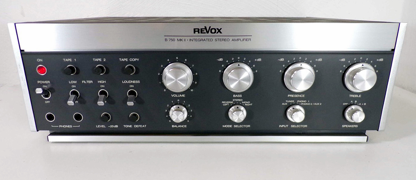 Die passenden Revox-Verstärker A75 ist ein feines Teil. Klingt (für die Zeit) sehr neutral. Hat auch eigentlich genug Leistung, wobei er mit wirklich hungrigen Boxen dann auch schnell überfordert ist.