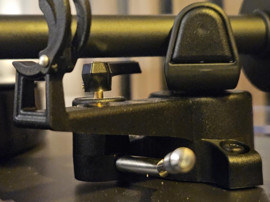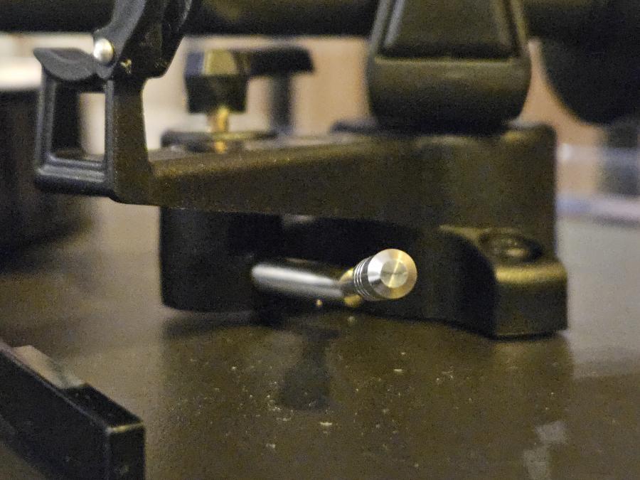 7. Wenn ich den Tonarm in Waage bringe, dann zieht er durch das antiskating nach aussen. Schupse ich ihn leicht an von aussen, dann zieht das antiskating ihn spühr und sichtbar wieder zurück. Ich würde aber sagen, nicht blockiert, eher wie ein magnetische barriere, die ihn zurückzieht.