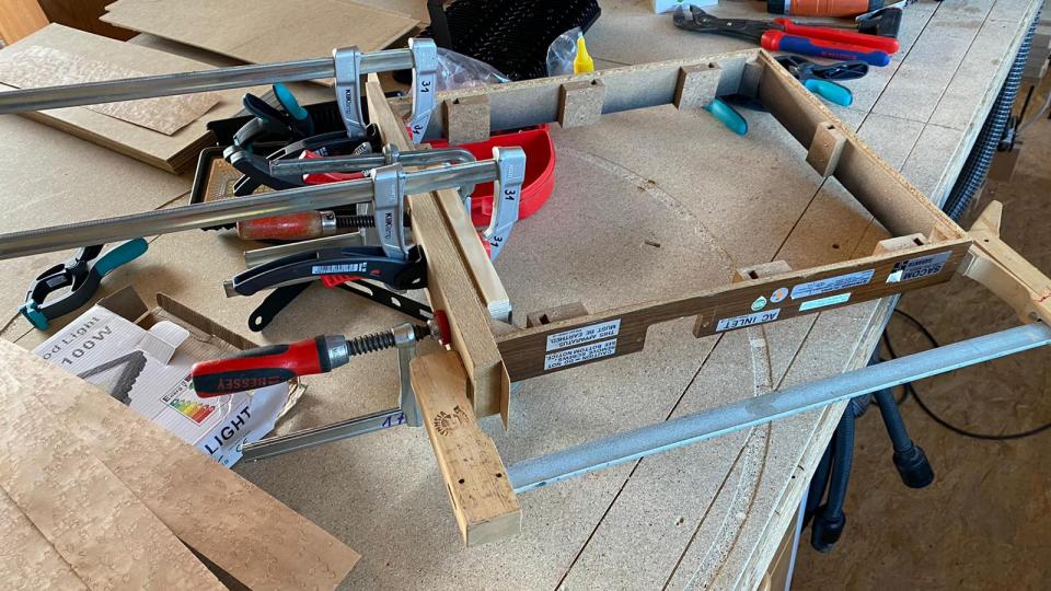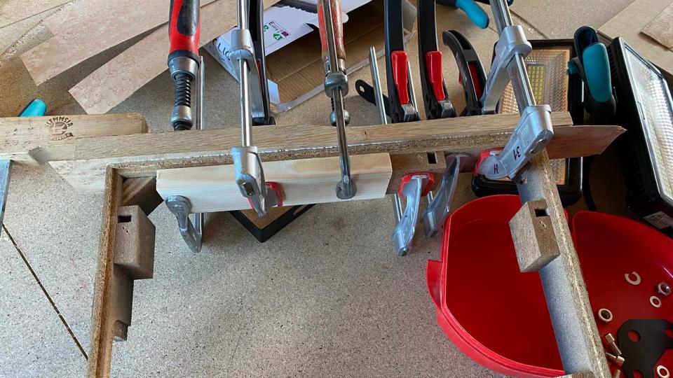 Schön fest mit einer Schraubzwinge und Holz fixieren... fertig.