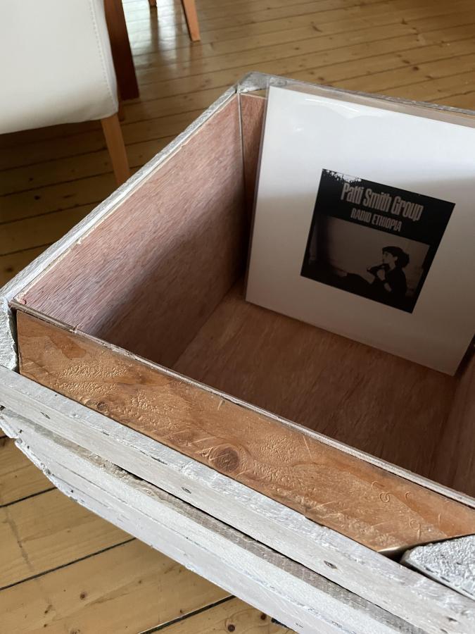 Verwertung einer alten Obstkiste zur Schallplattenkiste
