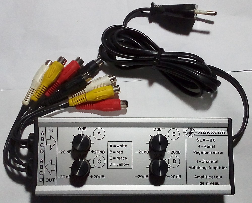 Vielleicht mit einem Pegelumsetzer. Ich nutze ihn um mein Signal der CD-Player abzuschwächen für DIN-Eingänge. Müsste aber auch andersrum funktionieren. Für die Endstufen würde ein 2-Kanal Gerät reichen. Einmal Lautstärke anpassen und dann hinter den Endstufen verstecken.