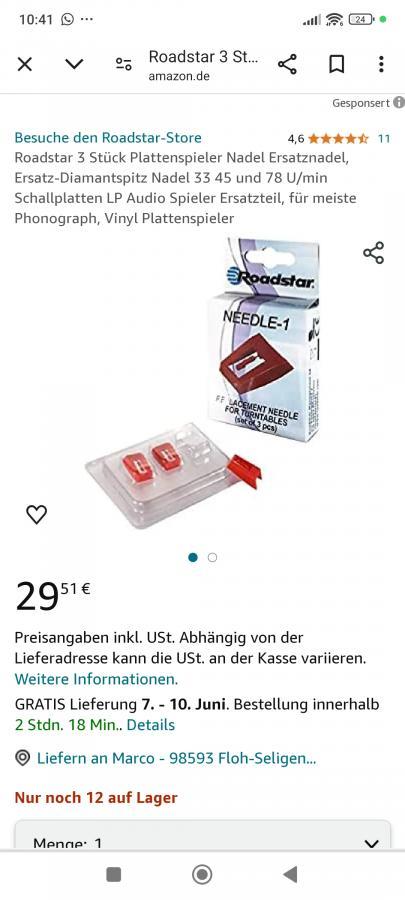 (04.06.24, 11:13)Jan schrieb: Das sind natürlich gaaaanz einfache Nadeln, aber bei dem Preis kann man ja auch nicht mehr erwarten. ich weiß halt noch nicht so welche Nadel denn überhaupt bei mir dran passt, und beste qualität ist um meine Platten nicht zu verschleißen