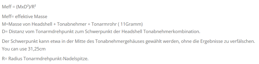 Thomas Schick zur Berechnung der effektiven Masse für einen seiner Tonarme. Deswegen sind Werte genannt, die für andere Tonarme nicht gelten. Also Werte ausblenden....